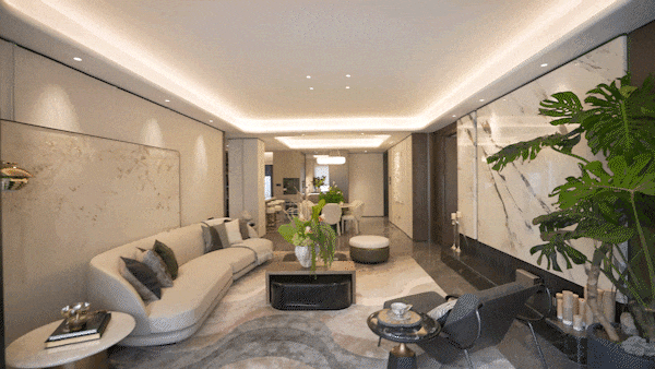 为璞玉之意,「超等家庭核心」客堂大面通铺星耀灰石材,仍是衡宇交付、物业办事有疑问?